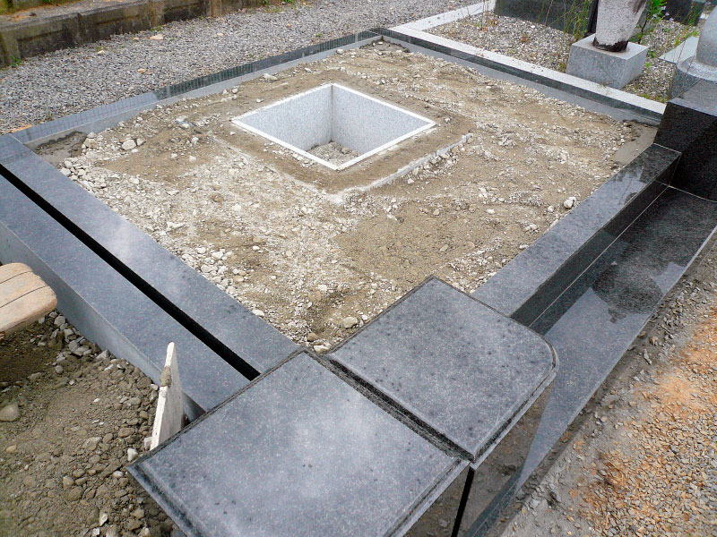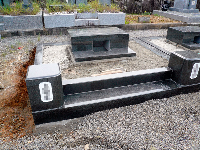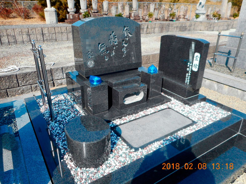 2種類の石種の違う石の組み合わせ。花立てにもこだわりました。