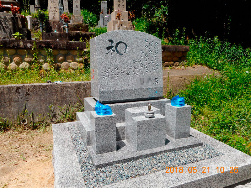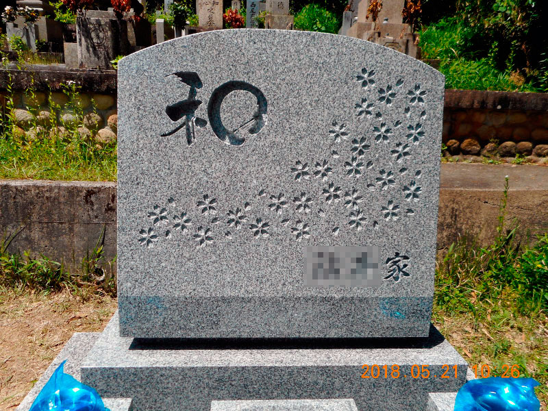 流れるような桜の花びらを表現したお墓です。「和」の文字にこだわりました。